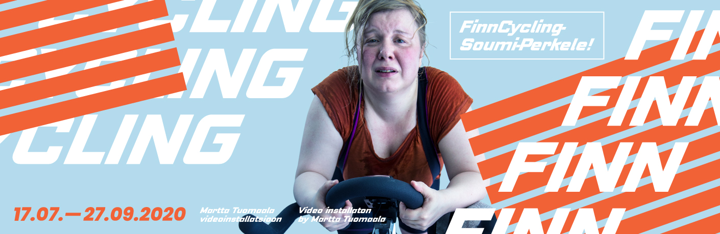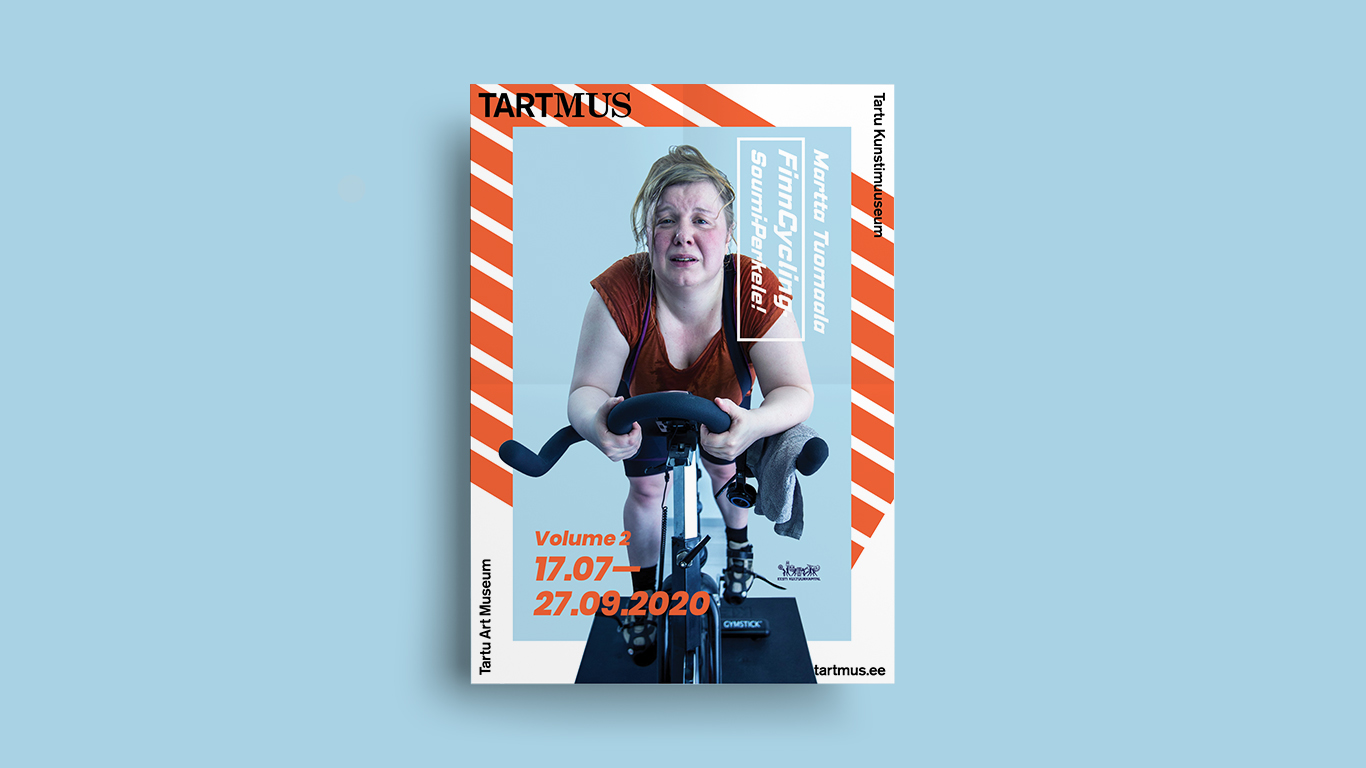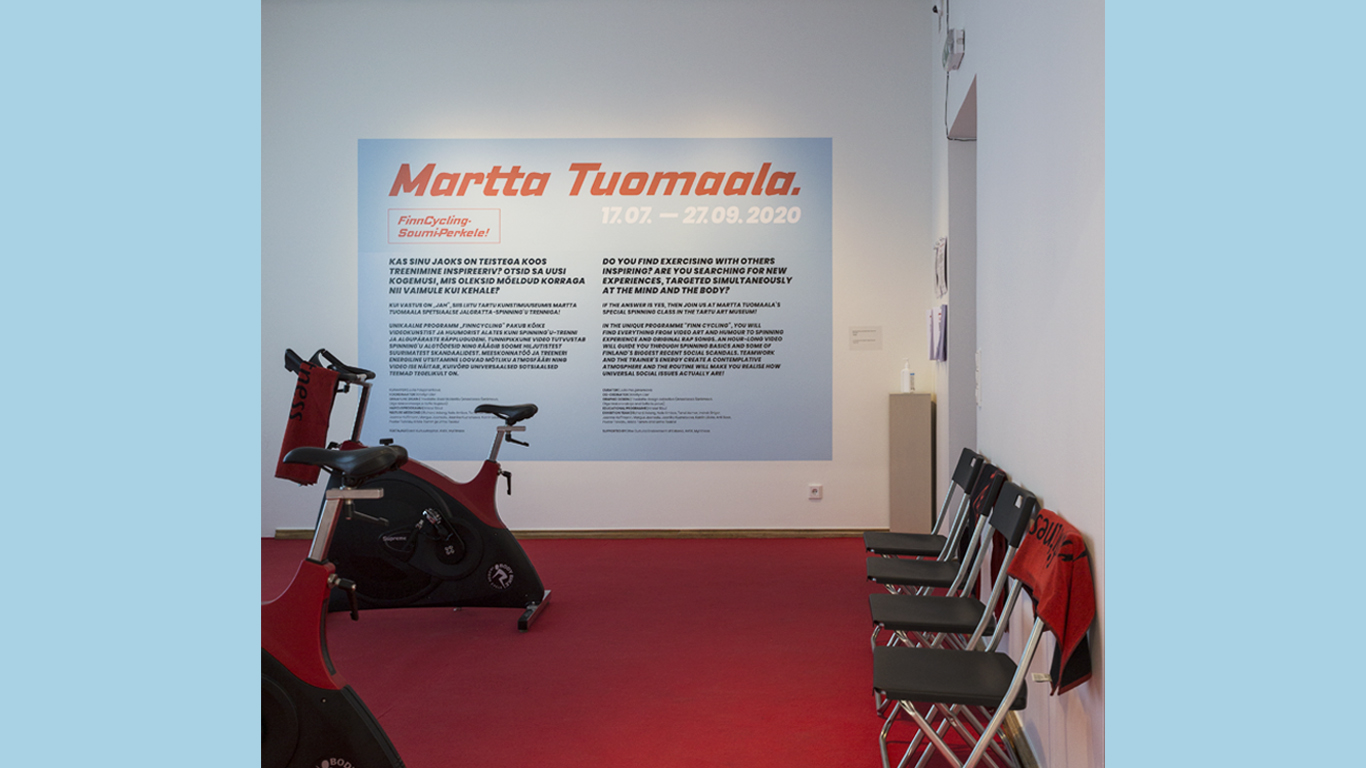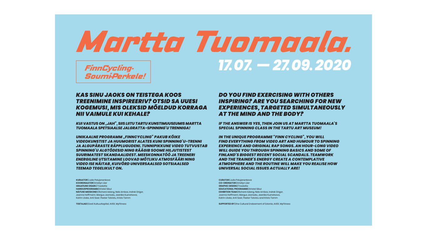 Identity for an exhibition of finnish artist Martta Tuomaala. Video-installation takes the form of a “spinning”-style training class which explores work-related topics and the role of women in Finnish society.
