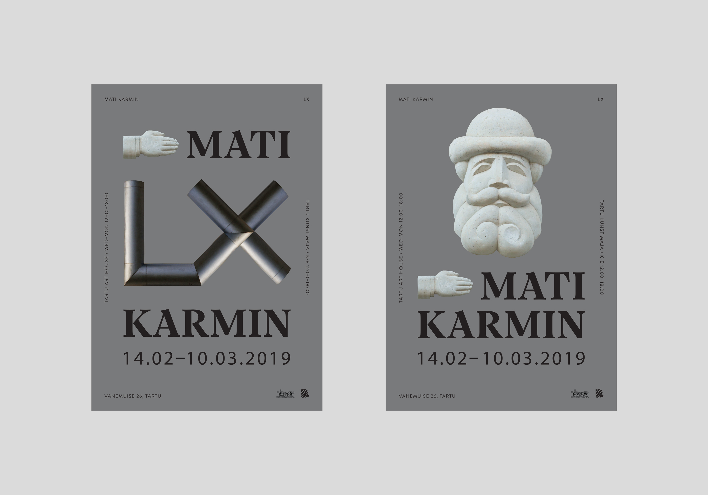 Visual identity for anniversary exhibition of legendary Estonian sculptor Mati Karmin.